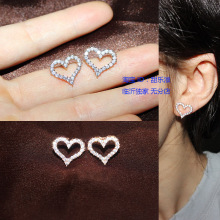 925银针镶锆石爱心耳钉 简约满钻镂空心形耳环甜美韩国耳饰包邮