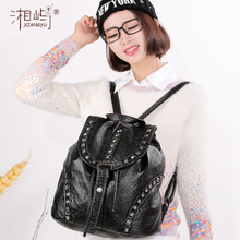 湘屿秋冬新款双肩铆钉潮流机车休闲百搭黑色韩版旅行出游背包实用