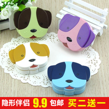 正品包邮隐形眼镜伴侣盒套装可爱卡通狗狗美瞳近视护理双联便携式
