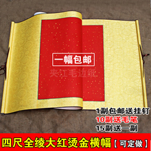 宣纸空白画卷 四尺二尺大红烫金横批 全绫精裱 画轴 书法卷轴定做