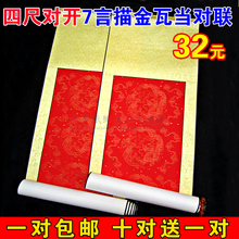 包邮空白卷轴宣纸画轴四尺对开万年红描龙对联书画卷轴大红对联