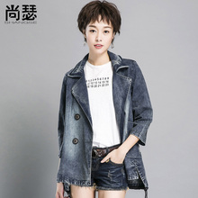 2017春秋装韩版双排扣女士风衣中长款宽松大码牛仔外套女秋季女装
