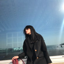 立体裁剪随性气质琥珀真花扣毛呢西装外套 MAJI独立原创设计