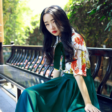 2017春秋新款民族风连衣裙明星同款度假刺绣两件套衬衫长裙套装女