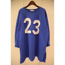 现货韩国东大门代购17春季女装新款领口做旧数字23长袖卫衣连衣裙