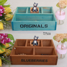 实木创意桌面分类发饰发绳收纳盒木制复古格子地中海小物品储物盒