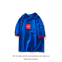 山下 17年夏季新款创意印花短袖螺纹拼接宝蓝色插肩袖青少年T恤潮