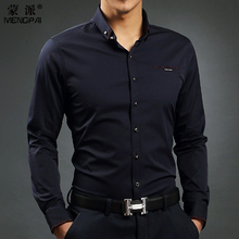 蒙派秋冬季新款中年长袖衬衫男士衬衫时尚休闲纯色商务衬衣寸衫