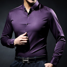 蒙派2017春季薄款男装商务休闲长袖衬衫纯色时尚免烫衬衣