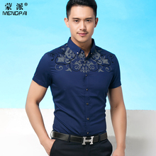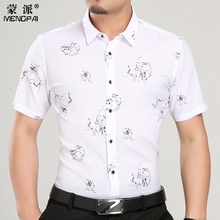 蒙派短袖衬衫男士夏季商务休闲碎花衬衣 男装免烫寸衫 韩版修身