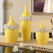 欧式陶瓷花瓶摆件电视柜客厅陶瓷落地花瓶插花工艺品装饰品三件套