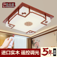 鲁木匠 中式餐厅客厅吸顶灯 实木艺长方卧室复古灯饰 led书房灯具