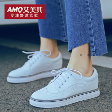 艾美其2017真皮运动鞋女韩版百搭小白鞋学生系带休闲平底单鞋女