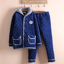 品牌贝贝绒夹棉睡衣男士款连帽休闲加厚纯色法兰绒家居服套装冬季