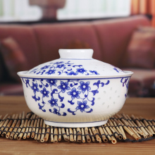 景德镇陶瓷大盖碗面碗青花玲珑瓷汤碗保温保鲜微波炉餐具紫荆花
