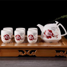 景德镇陶瓷茶具新款茶具家用婚庆办公礼品茶具套装亚光釉牡丹茶