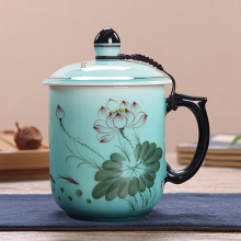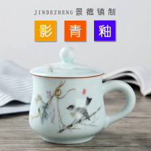 新品景德镇茶具隐青釉茶杯 陶瓷办公室茶杯 带盖办公杯陶瓷杯礼品