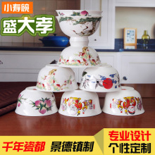 景德镇陶瓷寿碗套装加字骨瓷百岁碗烧字定制寿辰礼品订制寿碗盒装