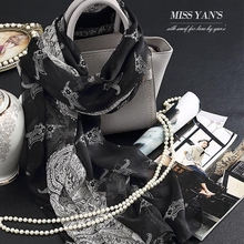 黑白腰果杭州真丝围巾女士桑蚕丝丝巾披肩长款薄春秋冬季夏季防晒