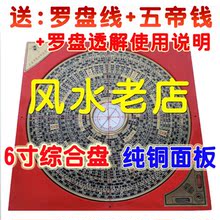 香港通胜老字号六寸罗盘纯铜面板专业风水综合盘送罗盘线和五帝钱