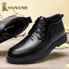 棉鞋男冬季保暖加绒真皮中老年厚底防滑商务休闲皮鞋男高帮棉靴子