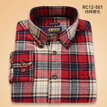 春季新款高品质法兰绒磨毛全纯棉格子衬衫男士长袖法兰绒衬衣JD