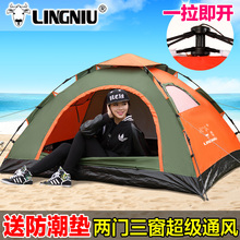 羚牛帐篷户外3-4人双人全自动2人野营野外露营沙滩旅游家庭套餐