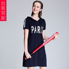 2017新款大码女装胖mm夏装运动休闲纯棉连衣裙宽松显瘦连帽卫衣裙