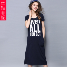 纯棉大码女装胖mm夏装新款字母印花连衣裙韩版宽松休闲过膝长裙潮