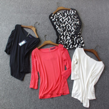 七分袖肩袖镂空初秋新款t恤~外贸原单大码女装蝙蝠衫显瘦好穿