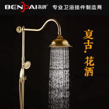 欧式金色玉石花洒套装全铜水龙头仿古浴室升降淋浴器莲蓬头混水阀
