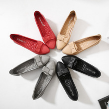 2017春季新款学院风红色单鞋欧美尖头绒面蝴蝶结平底女鞋34 40码