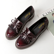 春季新款英伦风复古流苏小皮鞋女鞋中跟学院风漆皮粗跟单鞋休闲鞋
