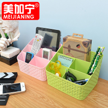 美加宁 桌面杂物分类收纳盒 遥控器收纳筐藤编 化妆品文具储物盒