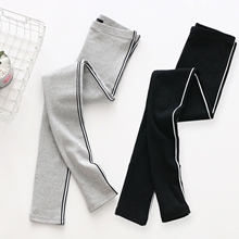 外贸纯棉侧白条拼接运动打底裤女春秋高腰大码不起球百搭小脚长裤