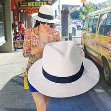 优质呛口小辣椒白色草帽礼帽女士男士时尚英伦爵士帽海边遮阳帽子