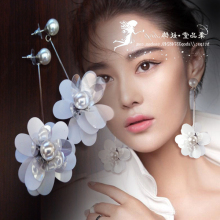 韩国直送漂亮夸张手工亮片花坠珍珠长款耳环耳钉气质优雅时尚流行