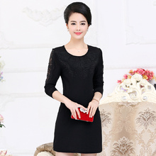 妈妈装春装连衣裙打底衫2017新款中老年女装婚礼长袖修身裙子套头