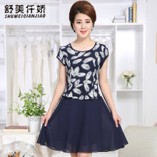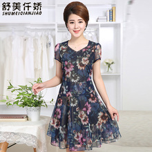 舒美仟娇中老年妈妈装夏装连衣裙2017夏新款中年女装裙子雪纺短袖