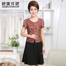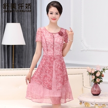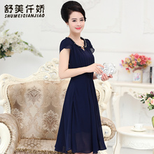 2017夏新款妈妈装连衣裙短款礼服40-50岁中年女装裙子婚宴短袖薄
