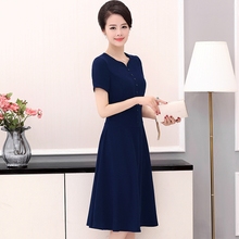 中老年女装夏装连衣裙中长款过膝大摆2017妈妈装夏季裙子修身纯色