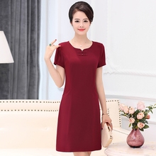 妈妈装夏装连衣裙短款包臀纯色2017新款中老年女装夏季裙子修身薄