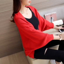 2017春季韩版大码蝙蝠衫针织开衫七分袖宽松时尚轻熟风毛衣外套