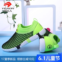 永高人男童鞋网鞋2017春夏新款儿童弹簧鞋网面透气女童跑步运动鞋