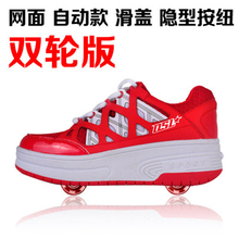 双轮暴走鞋儿童正品男童女自动隐形按钮爆走鞋轮子网布透气夏季