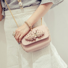 leleshop2016新款时尚潮流欧美风铆钉链条单肩斜跨小包包潮