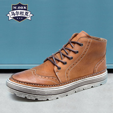 马尔杜克新款真皮男士休闲鞋子英伦潮男鞋高帮板鞋男鞋