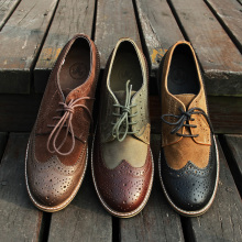英伦布洛克男鞋复古雕花皮鞋翻毛牛皮反绒真皮系带做旧低跟单鞋子