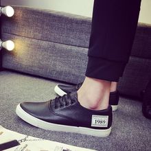 2017春季新款低帮黑色系带布鞋韩版休闲学生板鞋英伦PU皮面男潮鞋