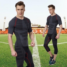 运动紧身衣套装男弹力健身跑步田径训练短袖T恤七分中裤速干打底